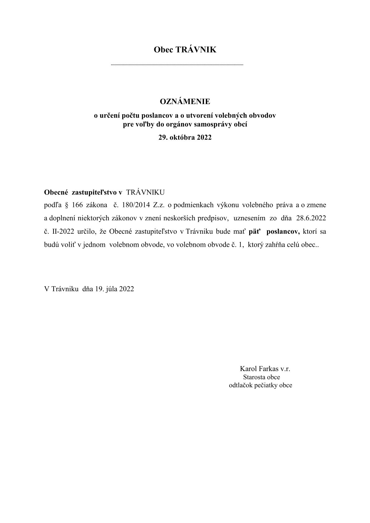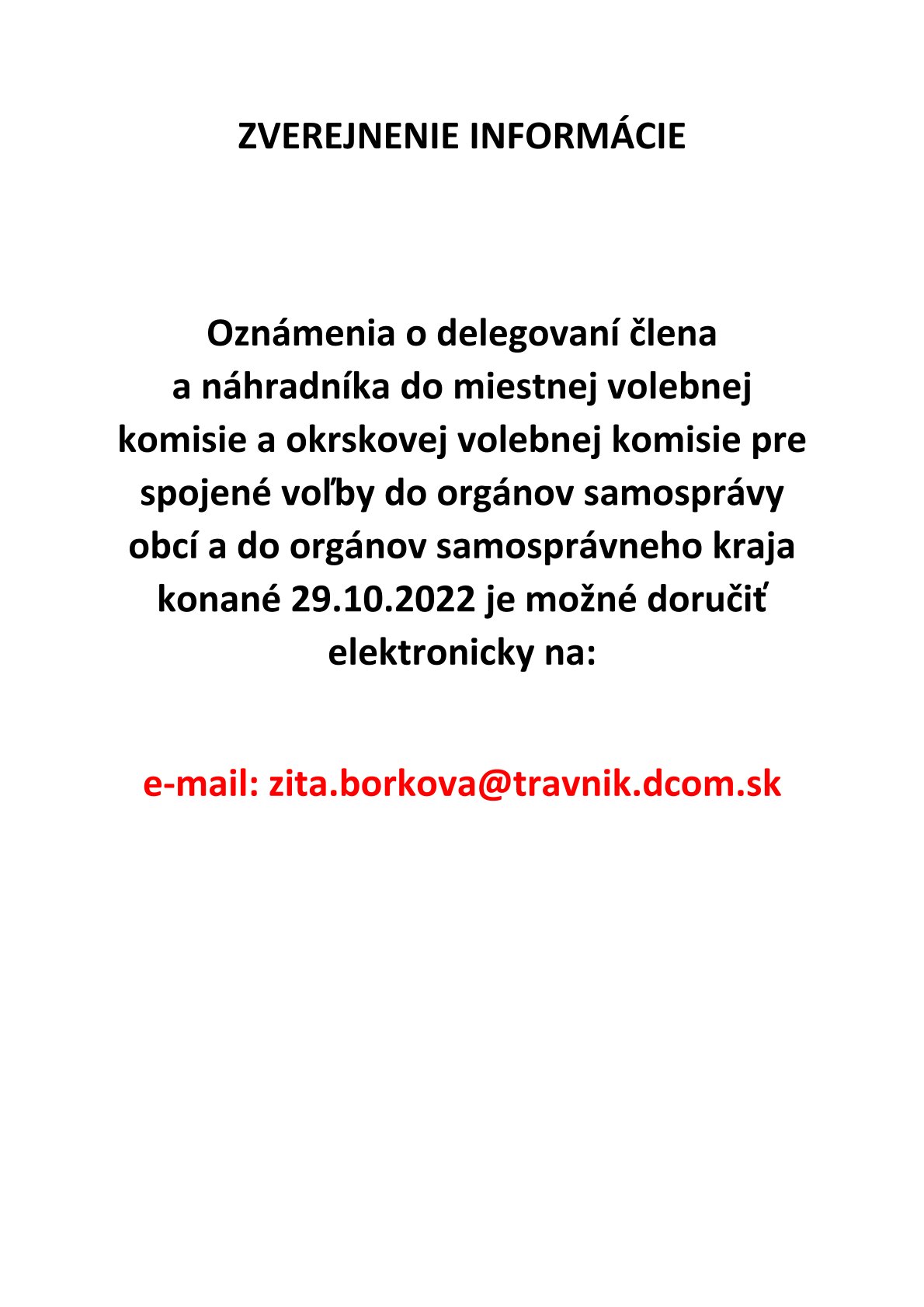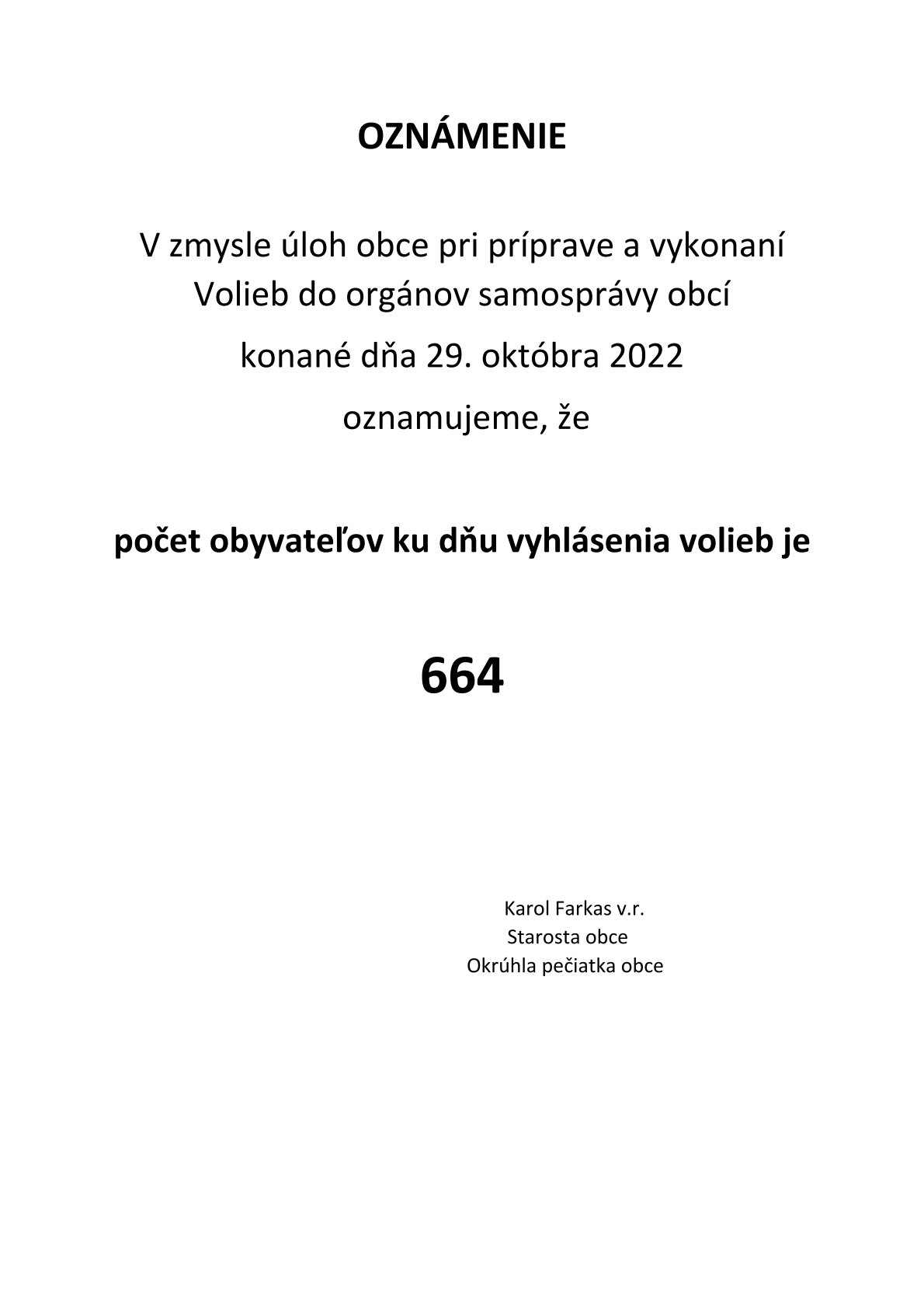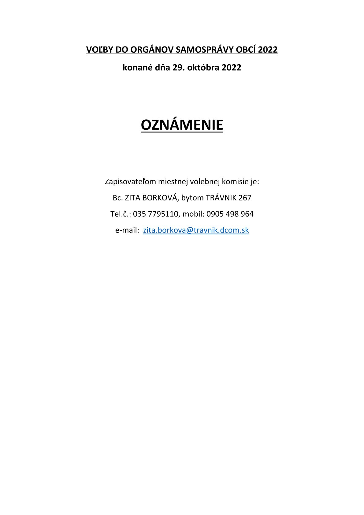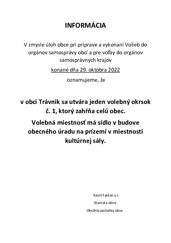 Voľby do orgánov samosprávy obcí sa konajú v sobotu 29. októbra 2022 od 7:00 do 20:00 h.