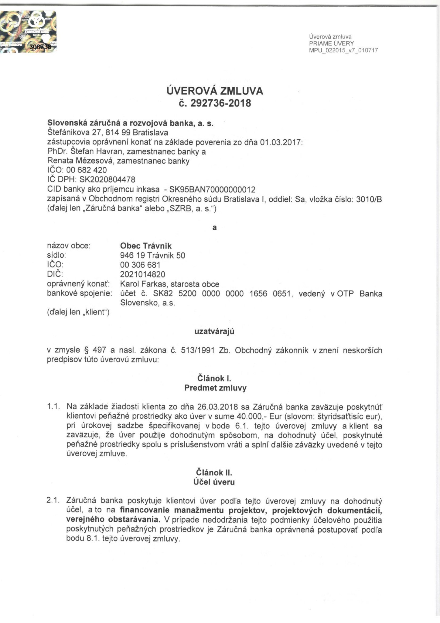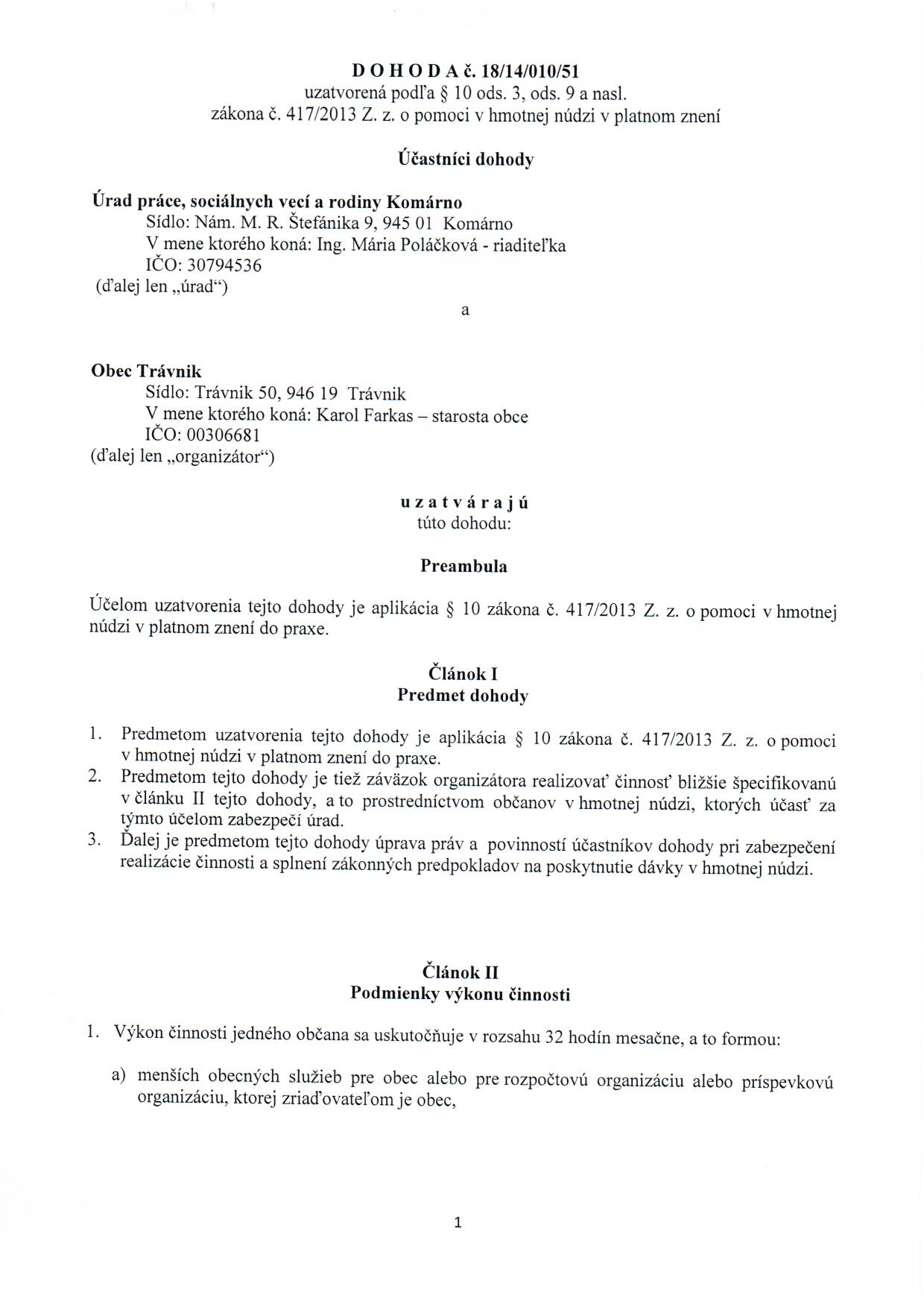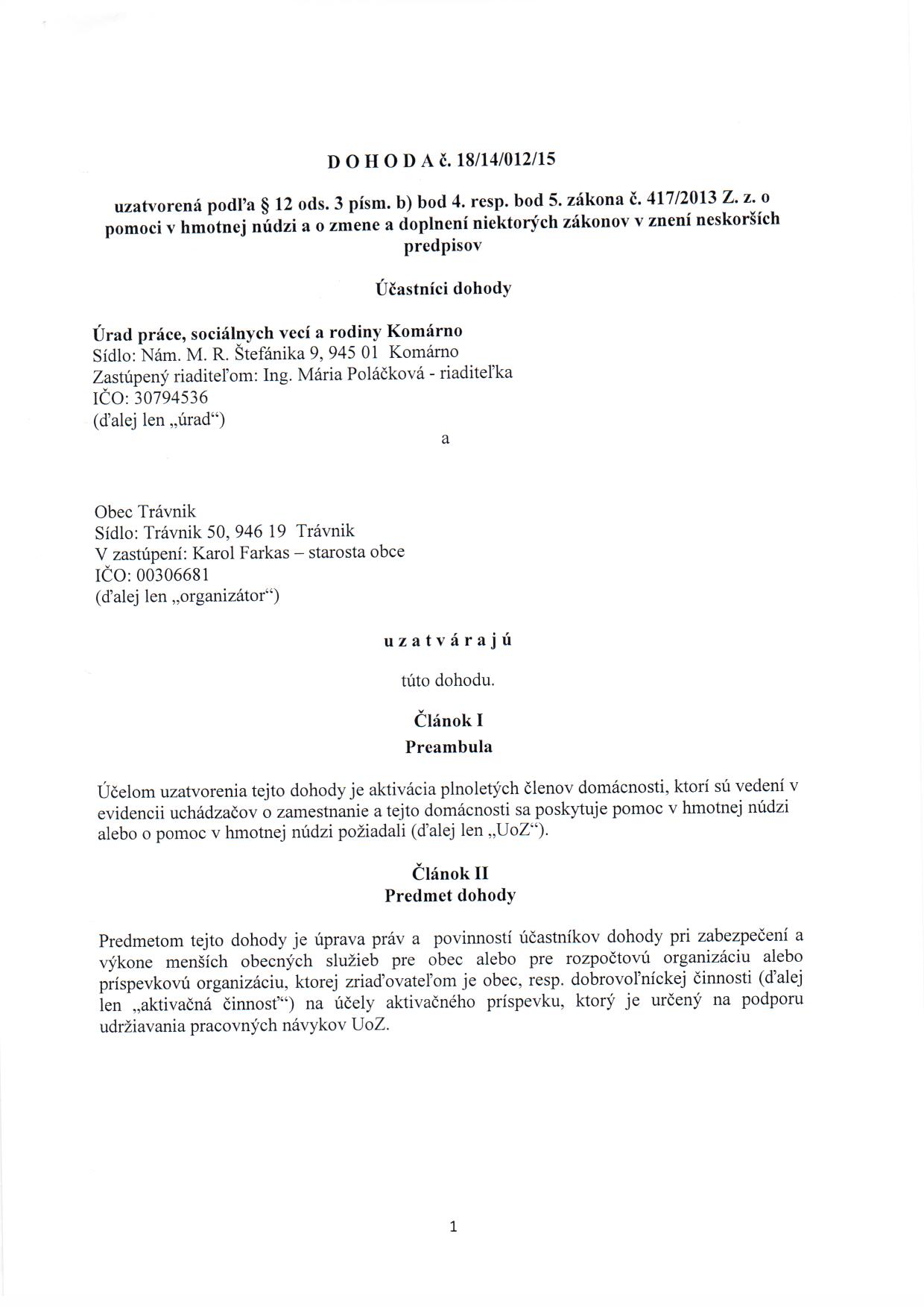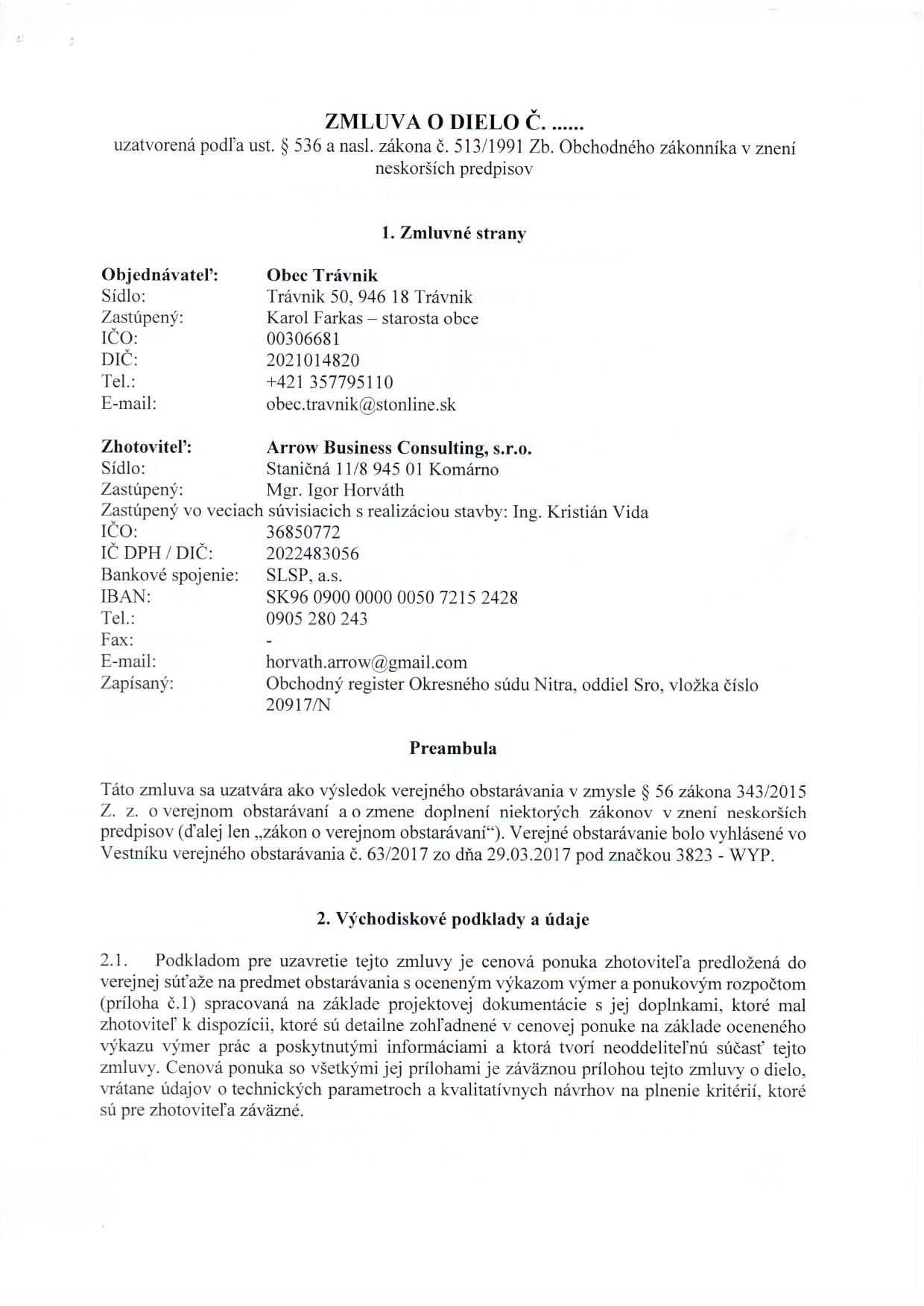 Obec Trávnik - IČO: 00306681