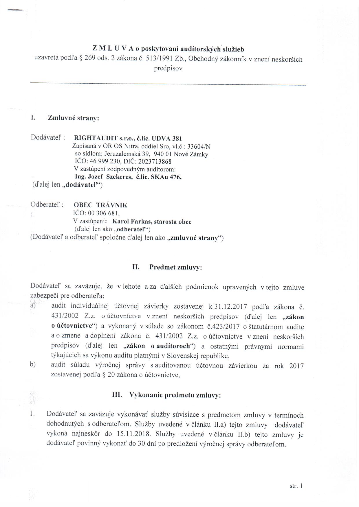 Zmluva o poskytovaní auditorských služieb